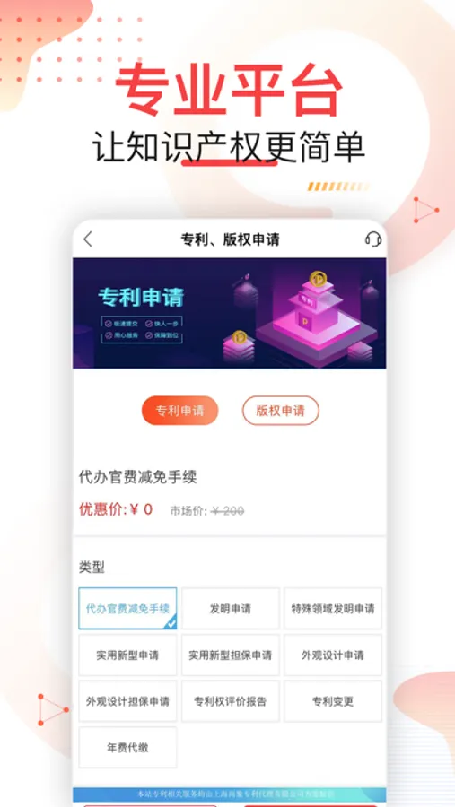 商标类:提供商标,商标转让,转让商标,商标注册,注册商标,商标交易,商标查询,查询商标,商标申请,商标设计,商标购买服务,同时提供国际商标、商标维权、商标异常、商标案件、明码商标、商标疑难问题等在线咨询并提供专业解决方案。专利类:专利变更,发明申请,外观设计申请,专利评价,年费代缴。版权登记:提供版权登记、维权、软著;图形、影音、文学作品类别著作权登记申请。
