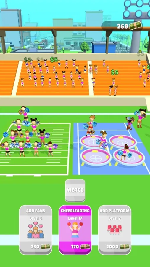 Act as the manager of a cheerleader team. Train your team of girls, increase their number, and add additional activities. Merge your accumulated knowledge into a better experience. The more you develop, the more crowd you can attract.