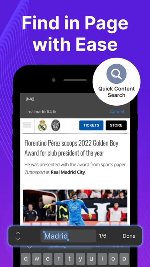 It can be difficult to locate a specific element on a long or complex web page, like finding a needle in a haystack. When you open the Private browser find-in page, simply click in the text input field and type in a word or phrase. The Safe browser will highlight all occurrences of your search query on the page, and you may cycle through them, up and down the page, using the arrows on the search bar.