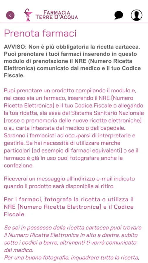 - Anticipo ricetta per prenotazione farmaci con notifica di disponibilità per il ritiro