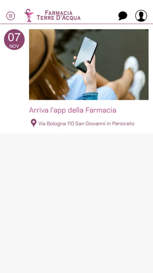 L'App della Farmacia Terre D'Acqua di San Giovanni in Persiceto (BO) ti permette di avere i tuoi farmacisti di fiducia sempre a portata di mano con consigli, informazioni, prenotazioni, ordini, richieste di prodotti e servizi in farmacia.