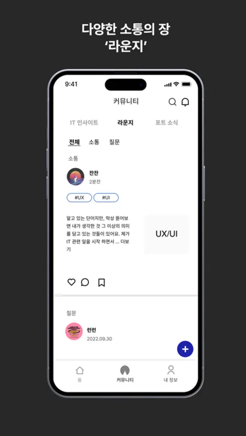 일을 준비하거나 하면서 드는 고민, 질문, 인사이트 그리고 일상에서의 사사로운 질문까지 소통할 수 있는 ‘라운지’