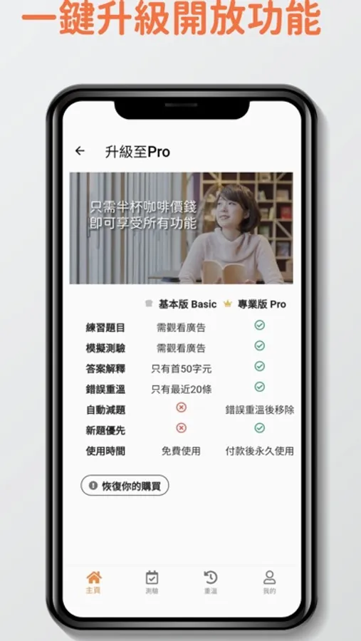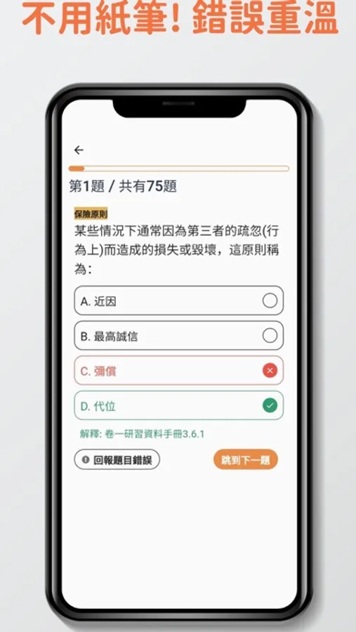- 自動記錄答錯過的題目讓你重溫