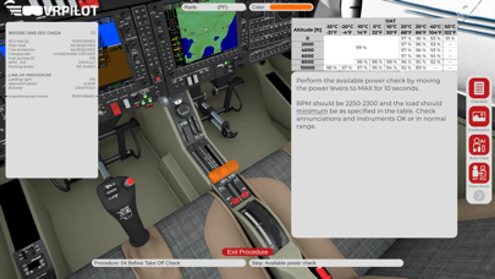 You will learn and understand the structure and task sharing of procedures, the correct callouts and flows. Explore Mode enables you to explore and understand the switches, knobs, levers, panels and screens of the cockpit interactively.