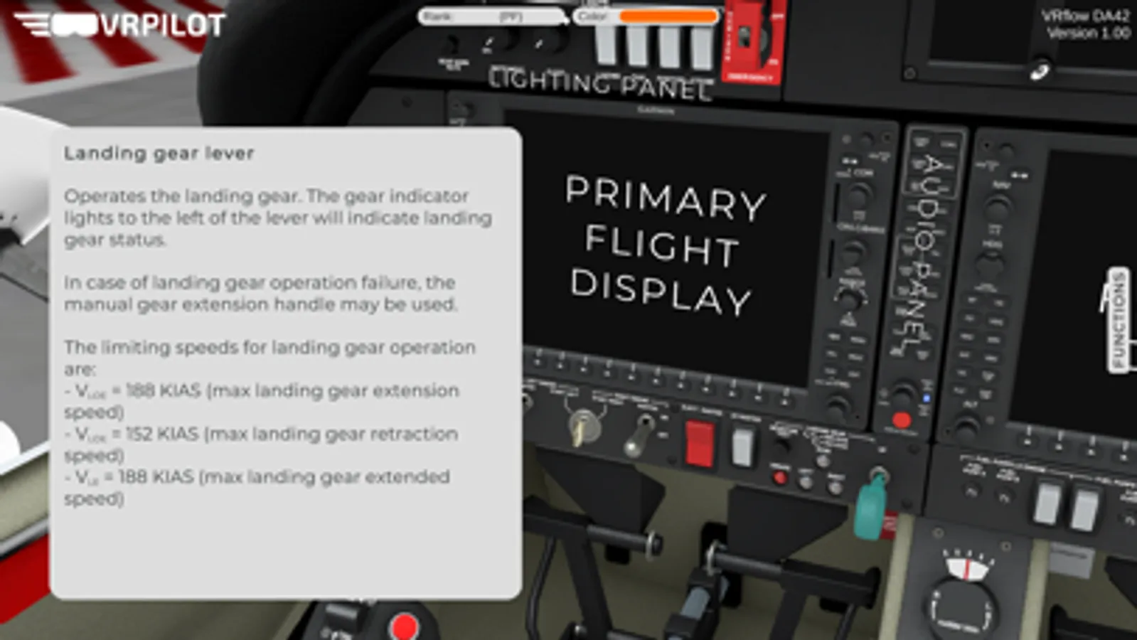Boost your learning rate with VRflow DA42, an advanced, interactive cockpit procedure trainer for the DA42-NG and DA42-VI. Get ready for your training, check ride or next flight with this strong learning tool, build specifically for efficient cockpit procedure training.