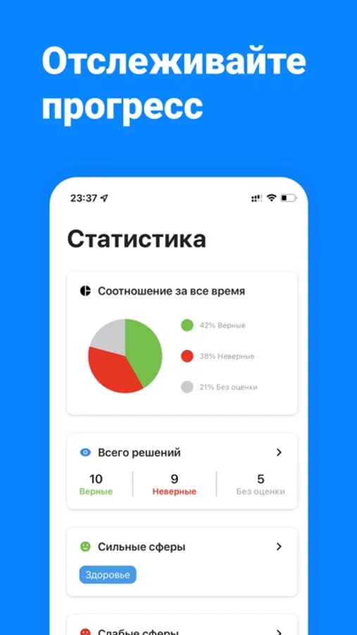 2. «Статистика». В этом разделе собраны показатели эффективности принятия решений. Вы сможете выявить наименее эффективные сферы решений и бросить усилия на их улучшения.