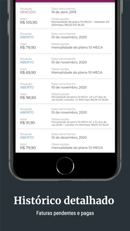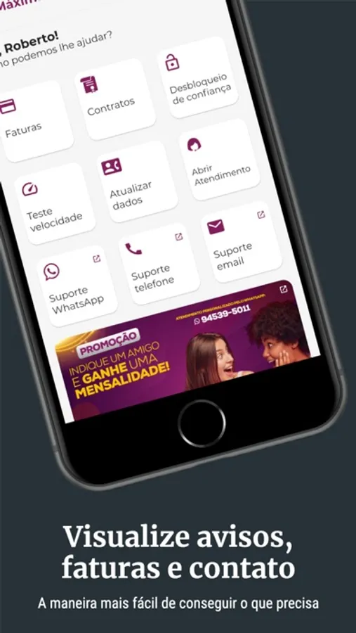 - notificações sobre sua conexão e boletos