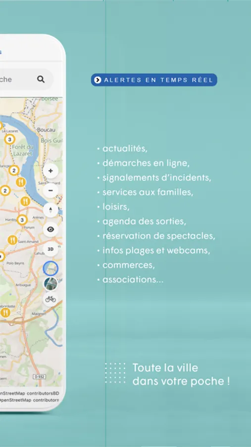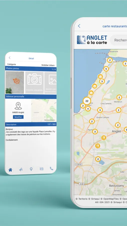 Actualités, démarches en ligne, services aux familles (cantine, réservation ALSH…), signalement d’incivilités, géolocalisation des écoles, des crèches, des parcs et jardins, parcours, transports en commun, commerces… Événements culturels et sportifs, webcams des plages, informations touristiques, réservations de spectacles, météo… l’application ANGLET simplifie votre vie quotidienne.
