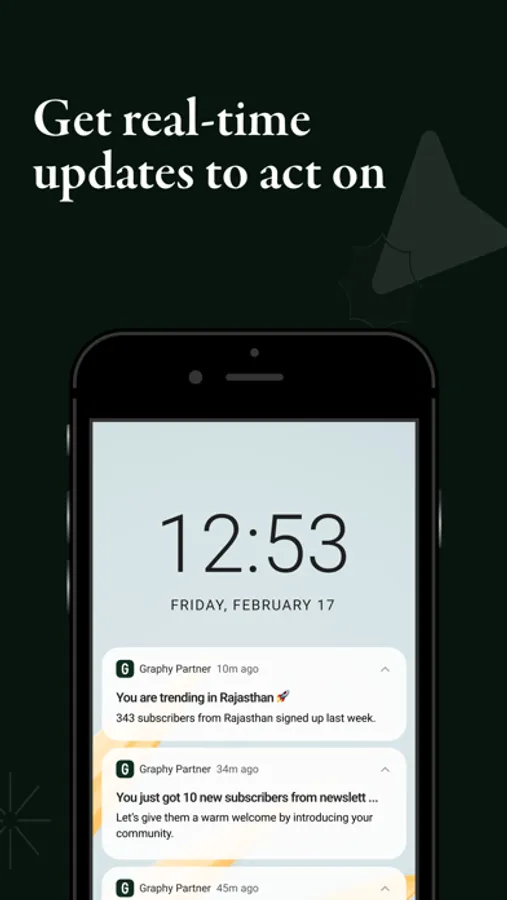 → **Real-time notifications:** From getting new subscribers to achieving milestones, be up-to-date with your Graphy.