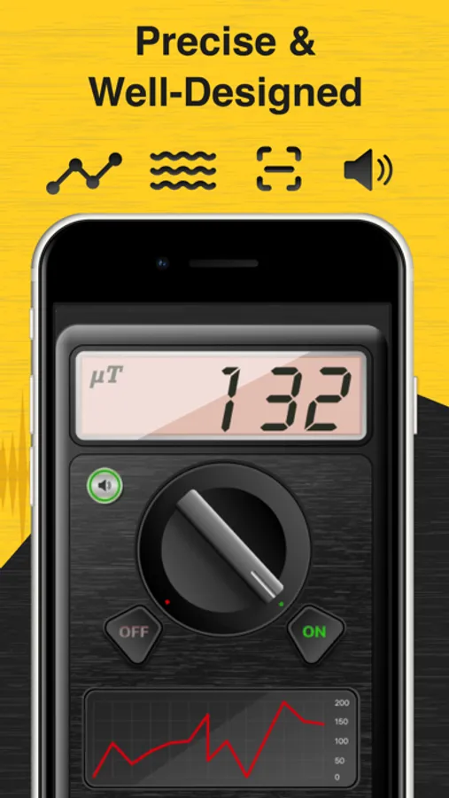 Metal Detector measures magnetic field value using a magnetic sensor that is built into your smartphone and shows magnetic field level in μT (microtesla).