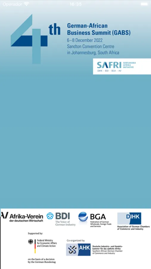 This app is for the th GABS Conference, where registered colleagues from Germany and African business interests meet, where economic partnerships between Germany and Sub-Saharan Africa are strengthened, and where business trends and market opportunities are explored. The App is to create a buzz around the event, where delegates schedule there preferred sessions they would like to attend as well as find out all the information needed during the event to make attendance of the event a smooth and pleasant experience for all. The app allows participants to view the members list, schedule onsite meetings, see agenda and upcoming networking events.