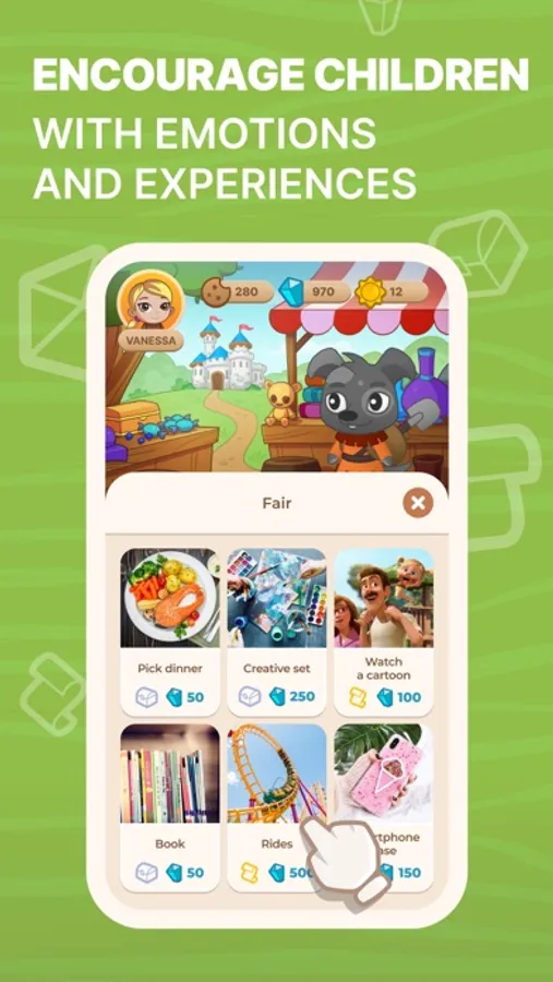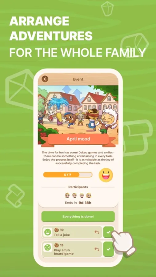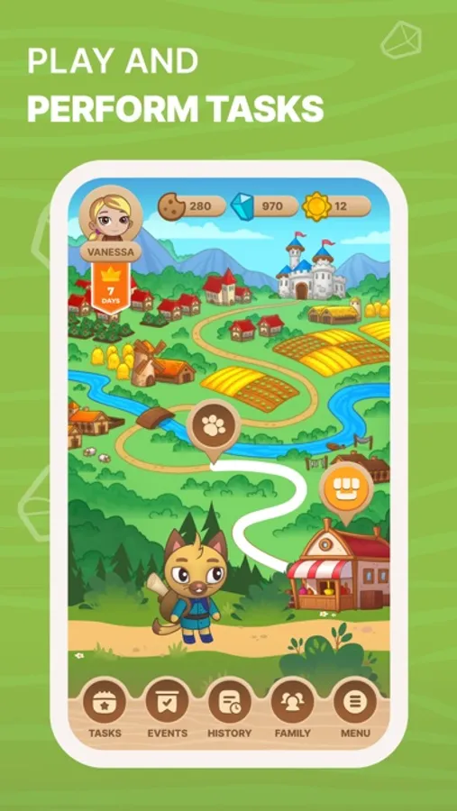 Your family finds itself in a fairy tale world where every member of the household has a pet that needs to be taken care of and fed with cookies. To earn these treats, you need to complete real-life activities such as: