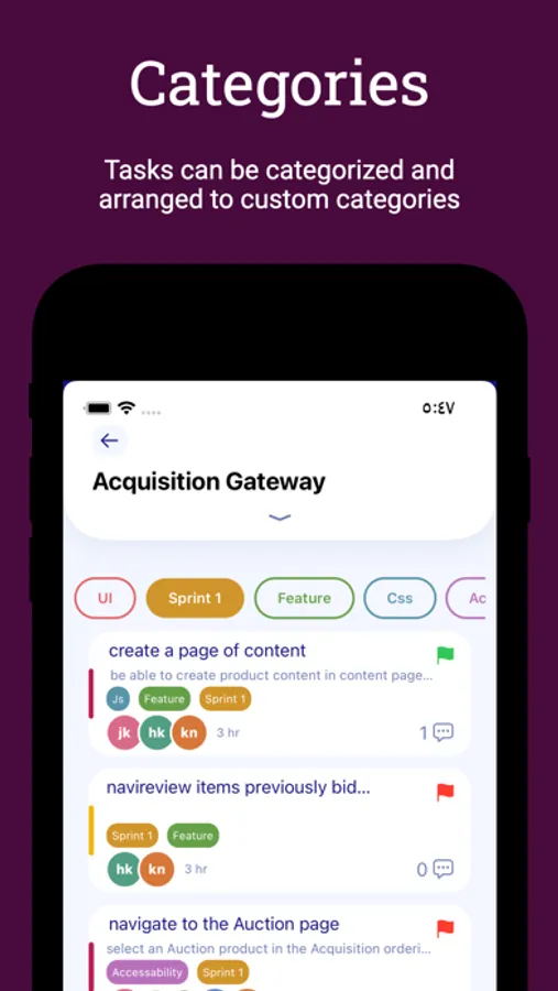 DoTeam allows adding custom categories to the project so that tasks can be categorized on it later