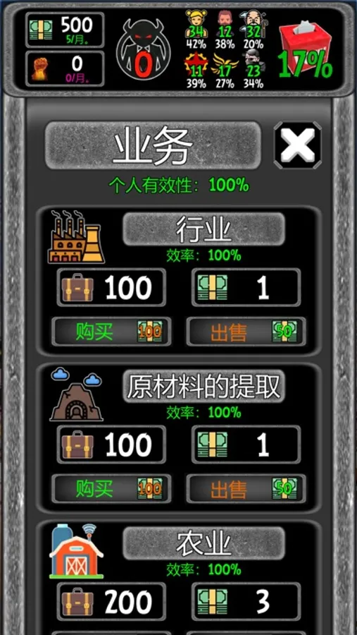选举和政治的现实模拟。领导政党、吸引赞助商或发展您的业务。在选民中竞选并赢得总统和议会选举。通过法律和法令,分配预算,管理和发展国家。要赢得这个策略 - 在敌人之前完成目标或填满胜利栏。现实的民主模拟器。可用语言:英语、日语、西班牙语、俄语、德语、法语、中文和韩语。