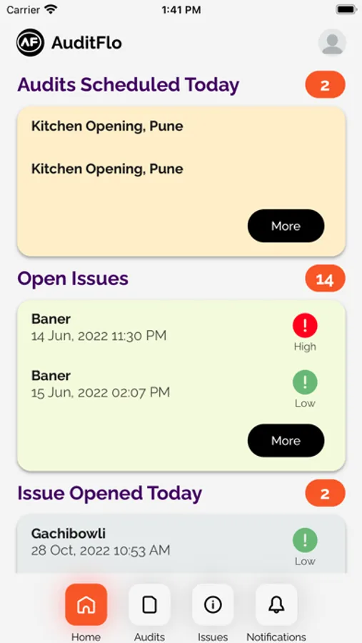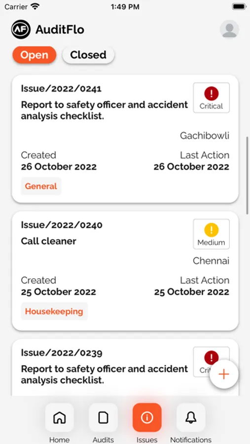 AuditFlo enables users to Conduct Audits, track issues and solve problems.