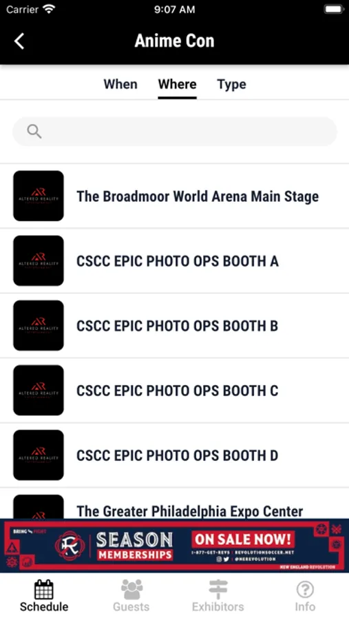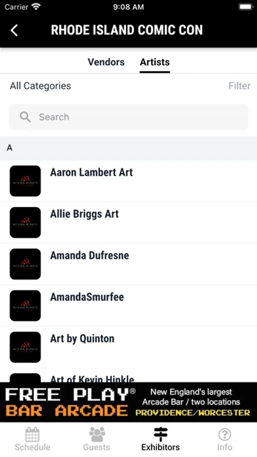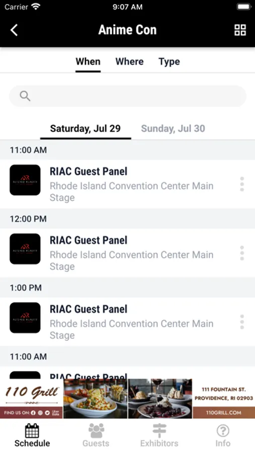Events include Rhode Island Comic Con, Contropolis PA, Contropolis MA, Contropolis NJ, RI Anime Expo, Colorado Springs Comic Con, Terror Con.