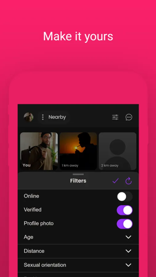 Dimmed is the ultimate hookup app that combines cutting-edge features to bring you the ultimate dating experience. With Dimmed, you can easily find users nearby in a visually appealing grid format. Discover new users and connect with them in a safe and private environment. Share your thoughts and experiences with the world through Dims - posts that can be seen by users around you. Say goodbye to endless swiping and endless subscription fees. Dimmed is 100% free and offers all the filters you need to find the perfect match.