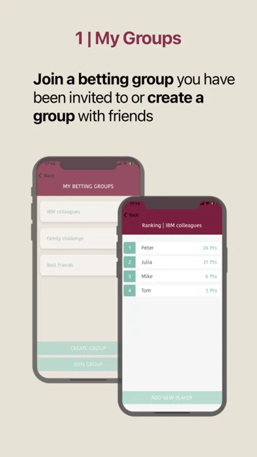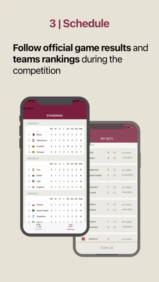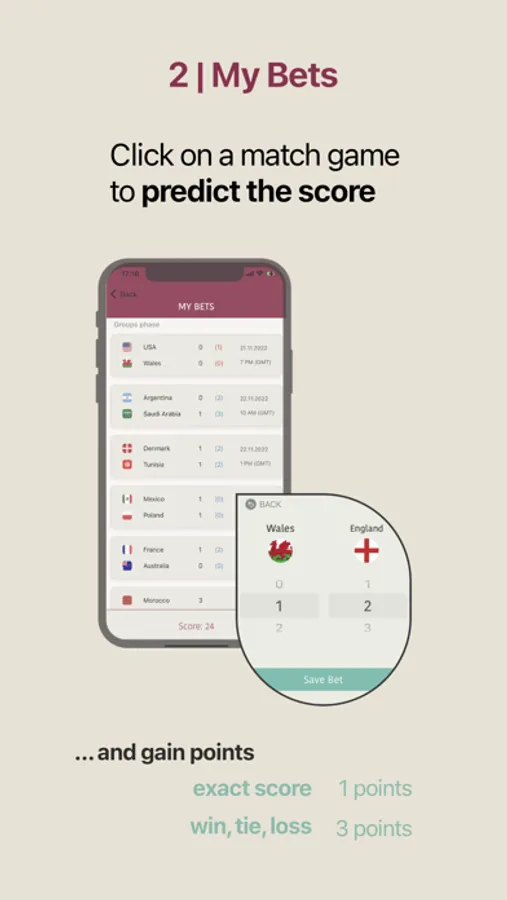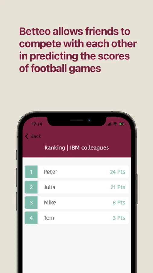 Betteo allows friends or colleagues to compete with each other in predicting the scores of the football world championship games.