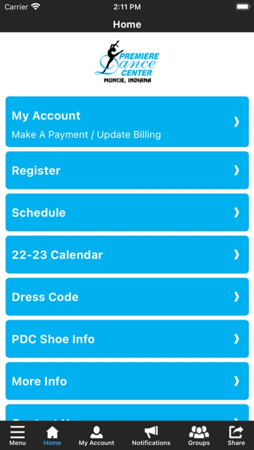 The Premiere Dance Center app is an easy-to-use, on-the-go way to access everything PDC has to offer right from your smartphone.