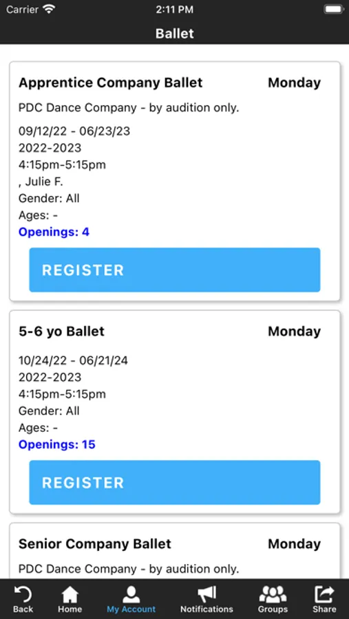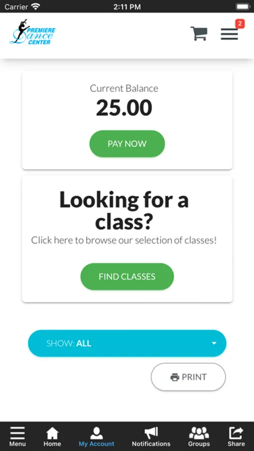The Premiere Dance Center app allows you to manage your account with ease, register for classes, parties, and special events. You'll also receive important notifications about class changes, closings, registration openings, special announcements, and upcoming events.