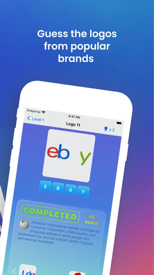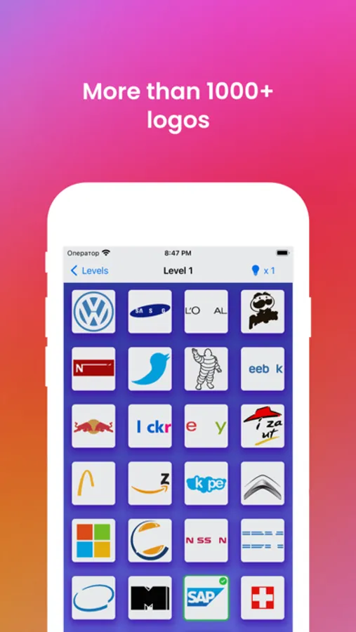 Divided into 21 levels, you'll see more than 1000+ logos. Lot's of interesting hints, that will help you to make each level fully done!