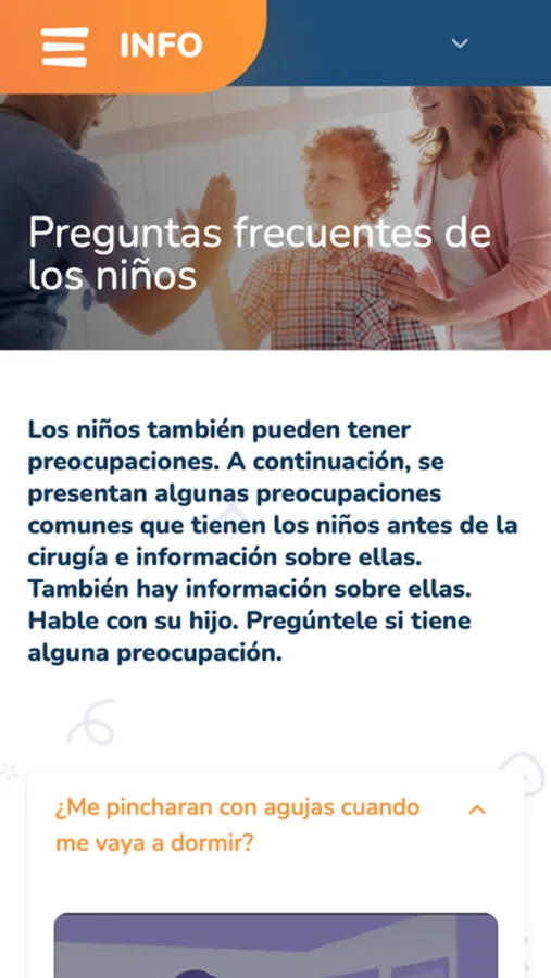 L-WebINFO es una aplicación personalizada que tiene como objetivo preparar a los niños y las familias para la cirugía.