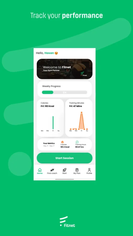 Fitnet App is on a mission to make your healthy lifestyle more enjoyable by making it easier to track your performance and the burned calories at the gym, providing exercise visuals for your plan, professional coaches to connect with, and much more.