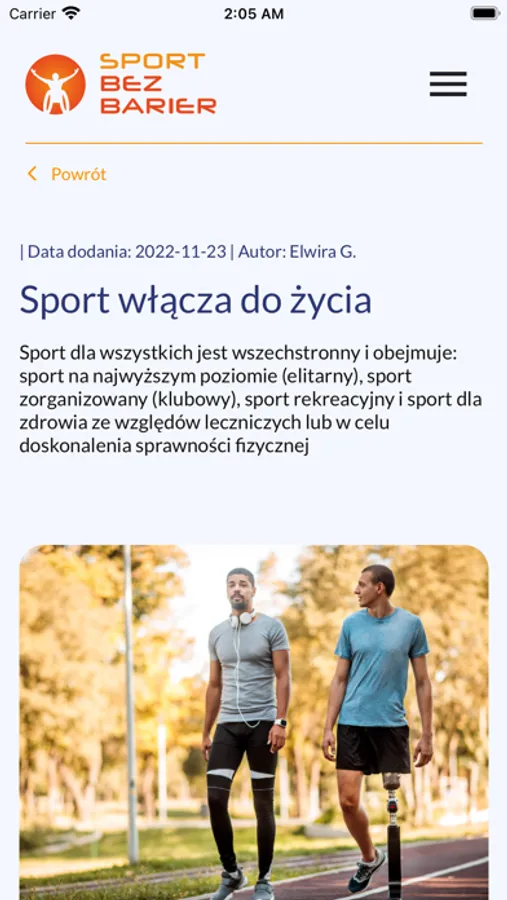 Aplikacja Sport Bez Barier to kompleksowe narzędzie, które pomoże Ci znaleźć wydarzenia sportowe dostępne dla osób z niepełnosprawnościami w Twojej okolicy. Codziennie możesz przeglądać najnowsze aktualizacje dotyczące ogłoszeń o wydarzeniach sportowych. Nasza aplikacja oferuje także wyszukiwania obiektów sportowych bez barier - czyli miejsc rekreacji ruchowej przystosowanych do potrzeb niepełnosprawnych. Nie czekaj! Dołącz do społeczności bez barier i pozwól się zainspirować.
