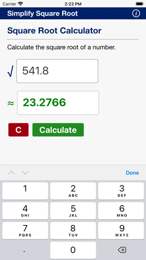 The iOS Simplify Square Root App can not only simplify square roots, but it can also perform other tasks related to simplifying and calculating square roots.