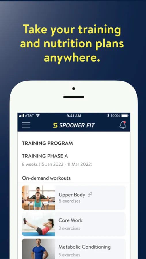 With the Spooner FIT App, you will have access to workout programs designed specifically to help you reach your fitness and health goals! You can follow & track your workouts, your nutrition, your lifestyle habits, measurements and results–all with the help of your Spooner FIT Trainer.
