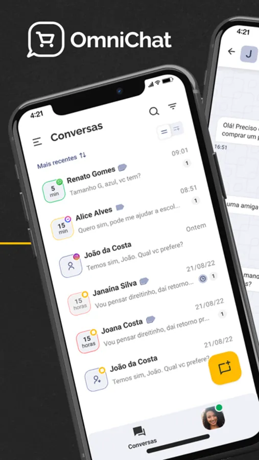 Agora seus atendentes e vendedores têm a OmniChat na palma da mão. Sua equipe, diretamente do ponto de venda, atende também os canais de chat, de forma rápida, segura e muito simples.