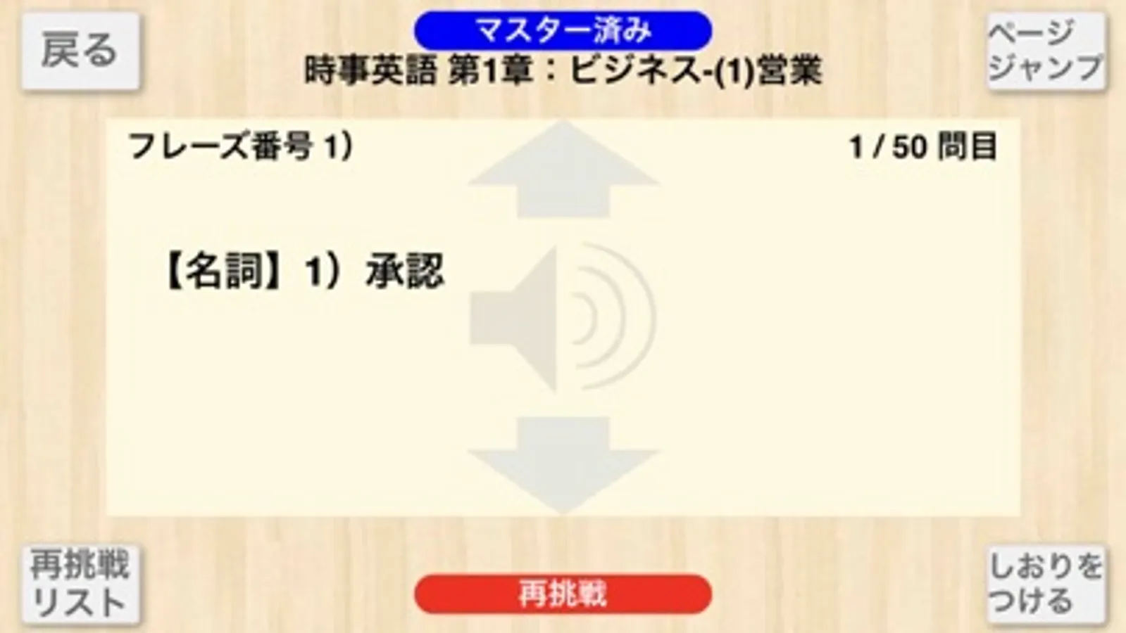 ・そして、「再挑戦テスト機能」を使って、英語を言い当てられなかったもののみを繰り返しテストし学ぶことができます。
