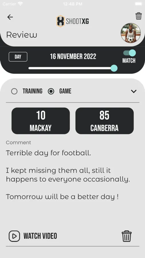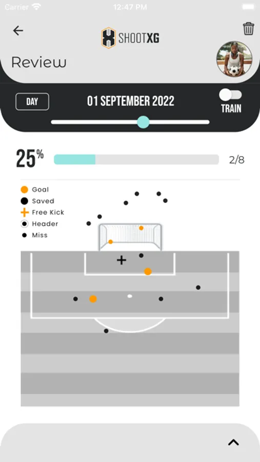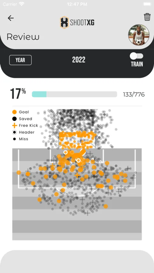 • Saving shot data for matches and training. Shot data including angle, distance, xG probability based on World Premier Leagues' statistics, as well as success rates from different pitch locations.