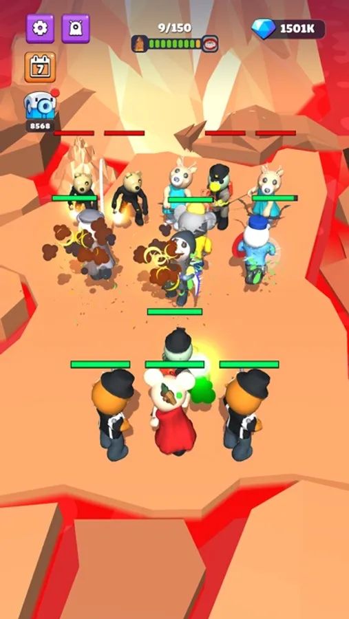 The final boss is coming after merging all your warriors! Choose the right combination, arrange the best position, and defeat the strongest opponent together in Rainbow Piggy End Period!