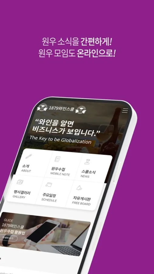 1879 강남와인스쿨과 부산와인스쿨 원우를 위한 전자 회원수첩입니다. 원우/동문 및 임직원만 이용 가능합니다.