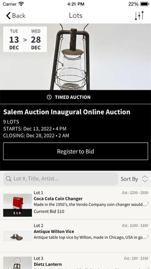 Salem Auction House is Oregon’s premier auction house with over 10 years experience. We host monthly auctions focusing on liquidations, antiques, collectibles, rarities, and more. With the Salem Auction House app, you can preview, watch, and bid in our auctions from your mobile device or computer. Participate in our auctions while on-the-go and experience the following features: Quick registration Push notifications so you don’t miss out Track bidding history and activity Watch live auctions when offered & more