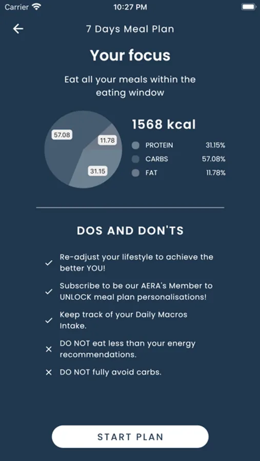 • Create your own meal plan according to your daily lifestyle & preferences.