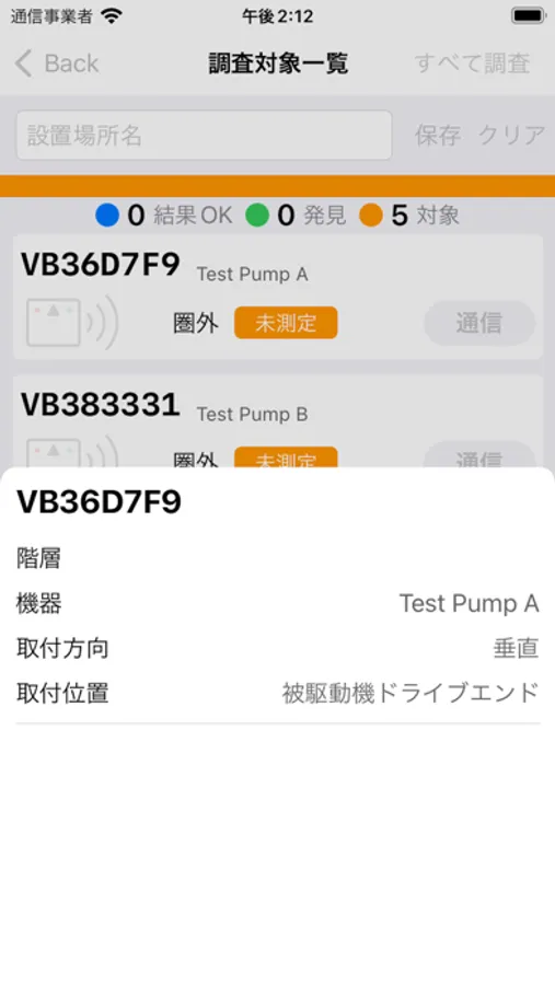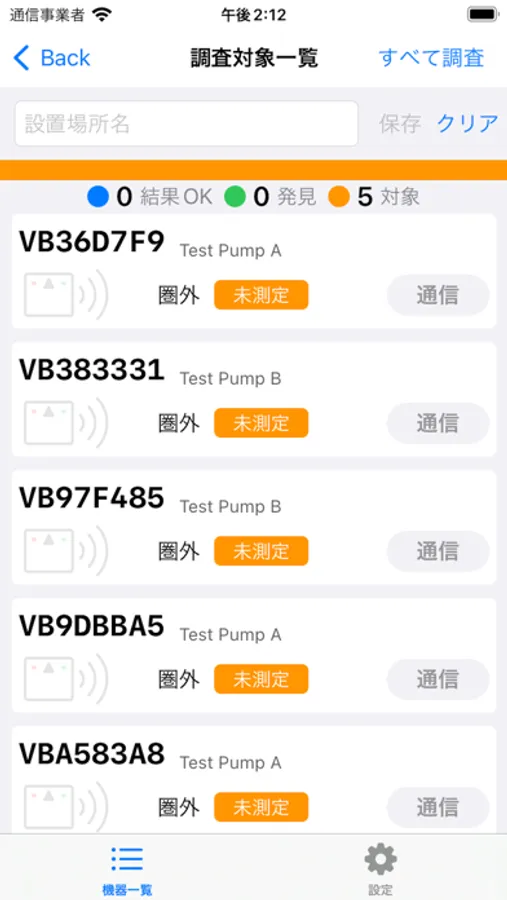 センサとの通信確認を行うことにより