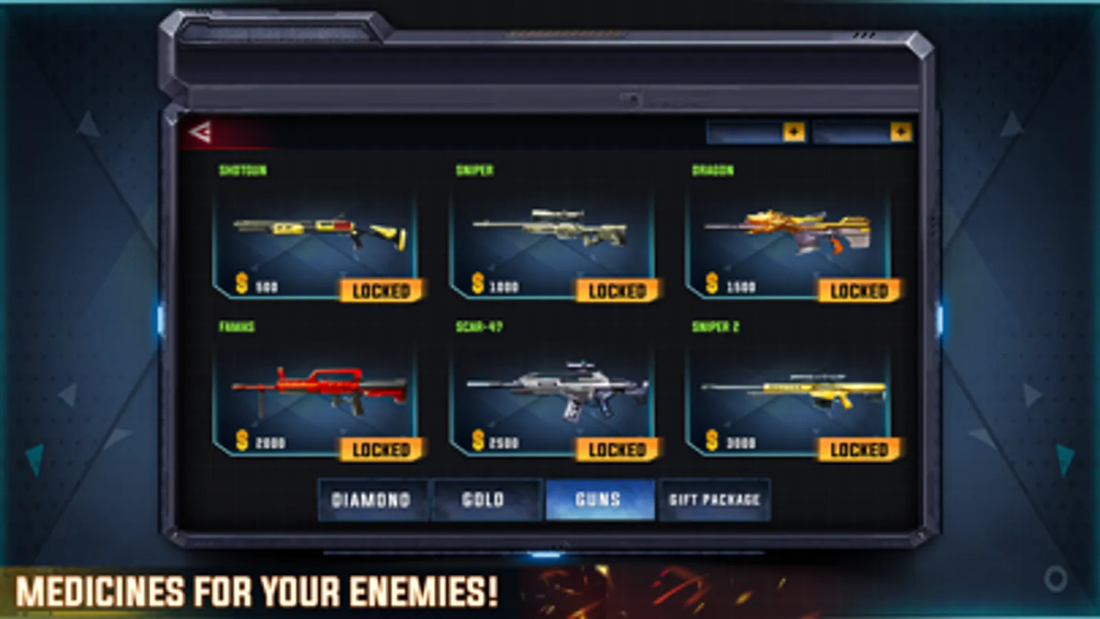 - More than 15 skinned modern guns like Assault rifles, machine guns, and Snipers.