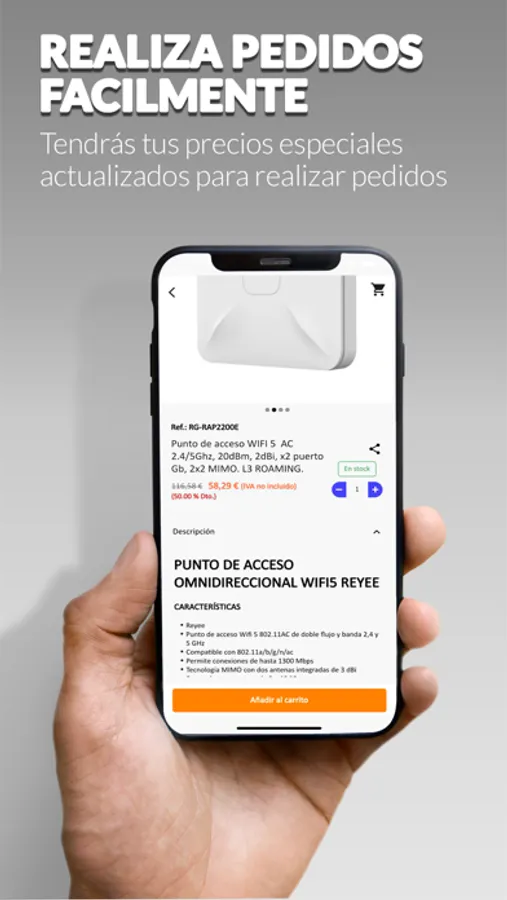En nuestra nueva app podrás realizar todas tus compras igual de fácil que hacías en nuestra web pero desde tu smarthphone. ¡Fácil y rápido y con tus precios especiales actualizados!
