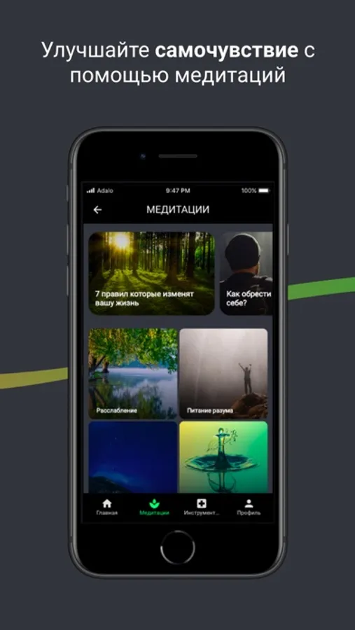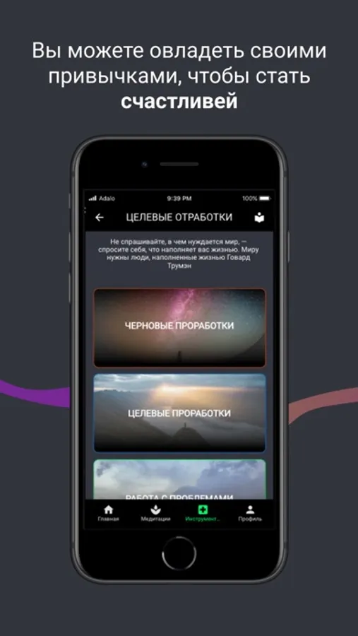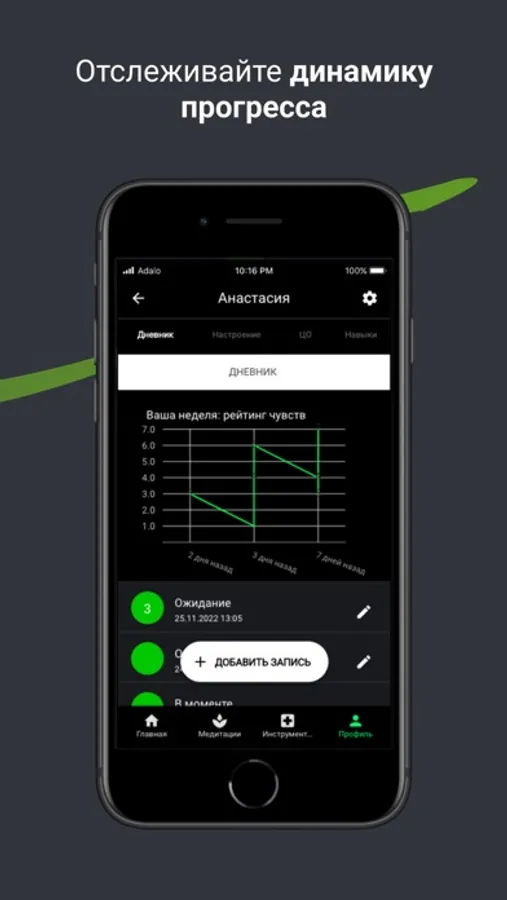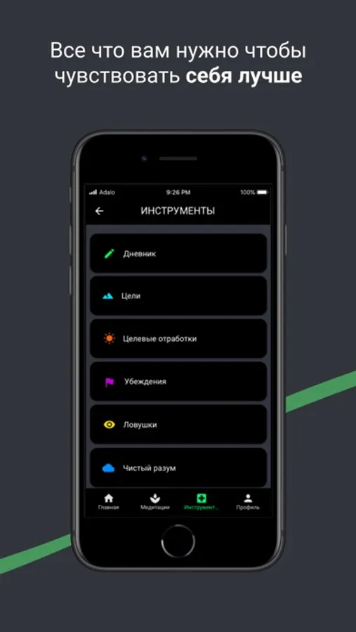 Все что вам нужно, чтобы чувствовать себя лучше, отслеживайте динамику прогресса, улучшайте самочувствие с помощью медитаций, отрабатывайте ограничивающие убеждения, работайте с психологом.