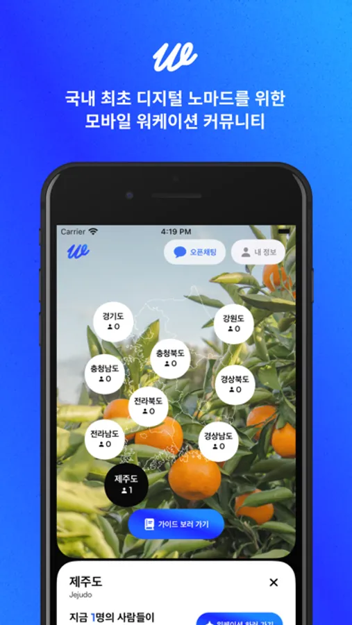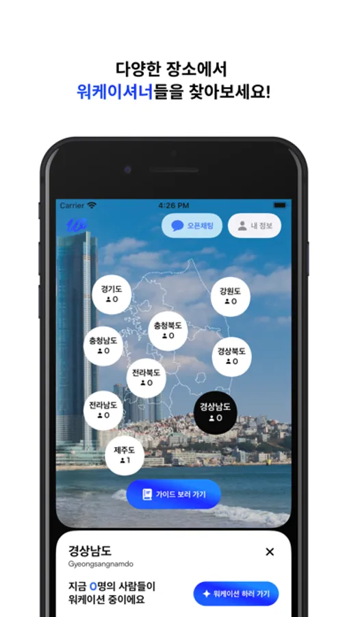 - 현재 워케이션을 즐기고 있는 사람들이 지역별로 몇명인지 한눈에!