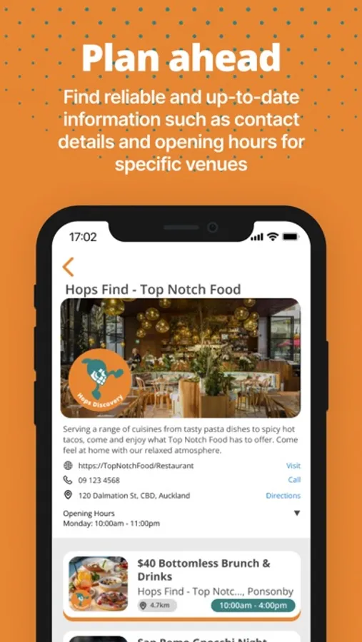 Plan your next outing with ease by using Hops for up-to-date, reliable, and accurate information on all participating venues. Hops allows venues to edit and update their opening hours, contact details, and current deals or events in real time. It's super easy! Visit a participating venue's page on Hops for all the information you need to ensure your outing is perfect.