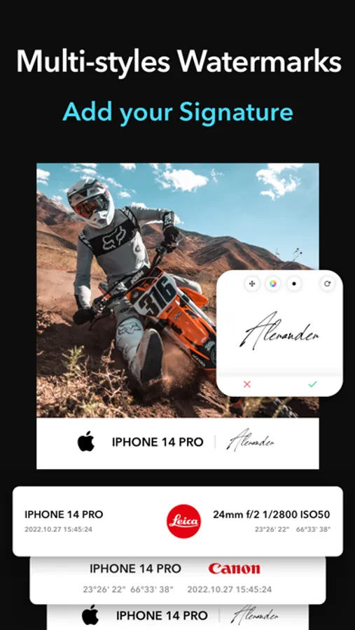 Now you can freely add watermarks on photos with photo parameters, device, and vintage vibe labels like a pro!