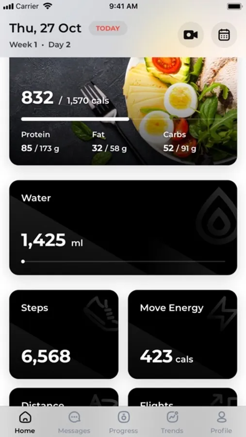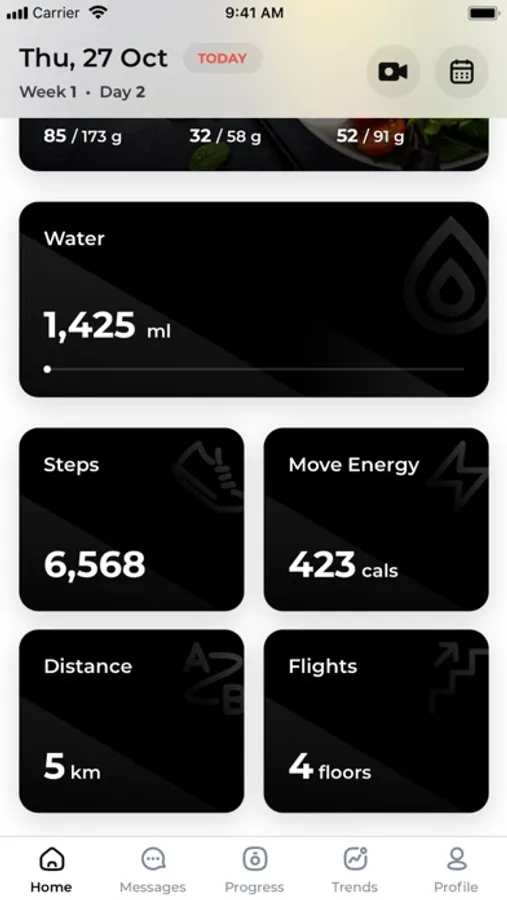 The app integrates with Apple Health to show your daily activity - distance, steps, active energy, and flights to help you better achieve your goals.