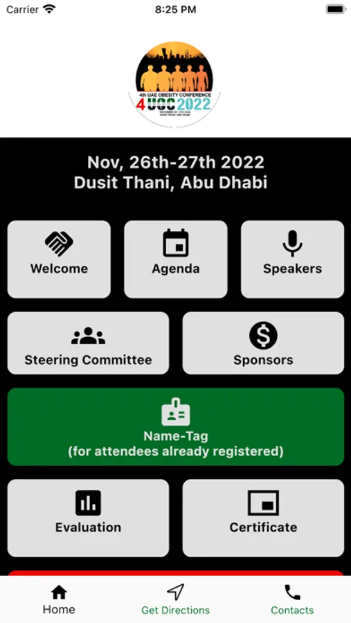 Through this app you can check the agenda, speakers, load your E-nametag, download your certificate and more.