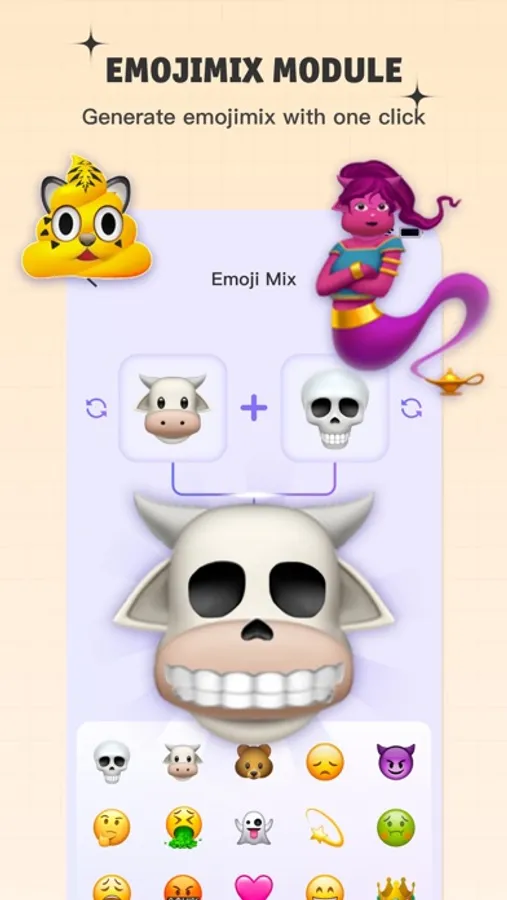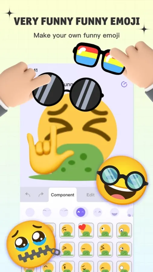 Tired of regular emoji? Then try the Funny emoji function, you can put different components on the same face to make your emoji more interesting. Have you ever seen someone cry and laugh at the same time? Have you ever seen the coexistence of cute and evil? Come and use this function, let your genius ideas come true!