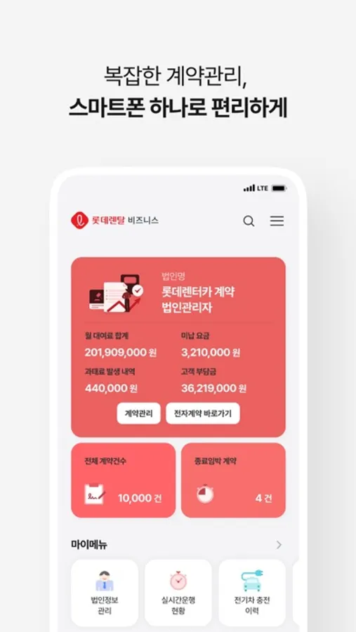 쉽고 편리한 비즈니스를 위한 렌탈 솔루션, 롯데렌탈 비즈니스의 공식 어플리케이션입니다.
