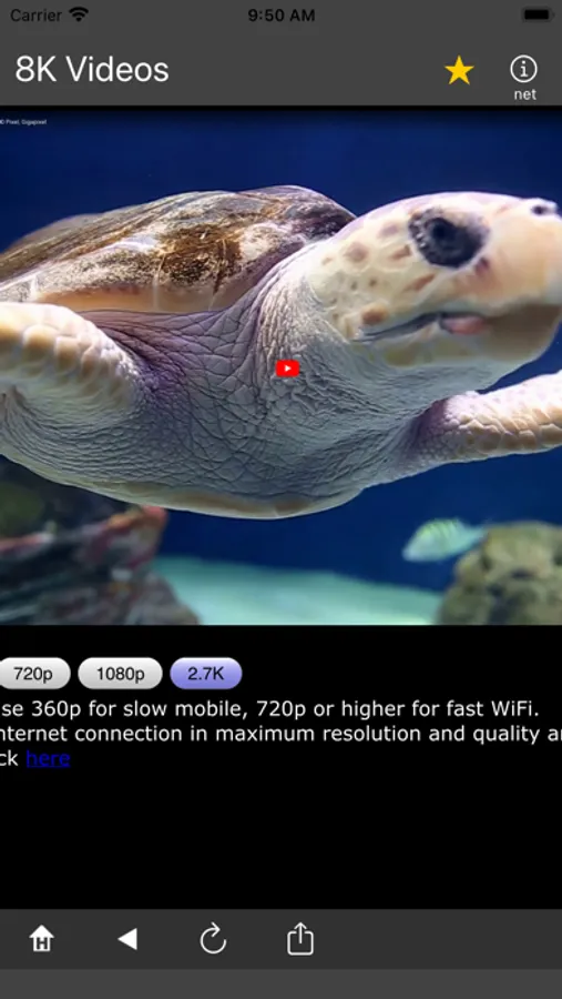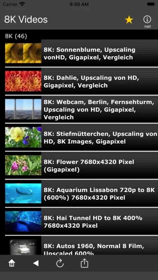 This app shows and plays 8K videos. However, since the iPhone and iPad cannot play original 8K videos in full resolution, the videos are scaled down a bit, but played in maximum quality. You can also send yourself the download link and download the videos in their original resolution on a PC or Mac and play them on an 8K television, for example. The videos were either recorded with a real 8K camera or were upscaled from 4K and improved in quality with special software. Aquarium, Nature, Relax..