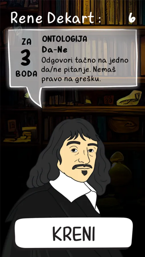 Uđi u filozofski vremeplov, razgovaraj sa Aristotelom, Dekartom, Kantom, Hjumom i Sartrom i oduševi ih svojim filozofskim znanjem.